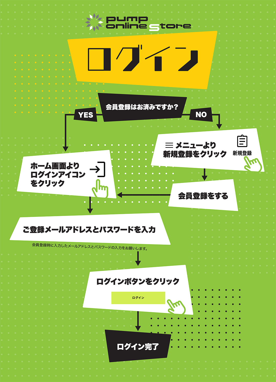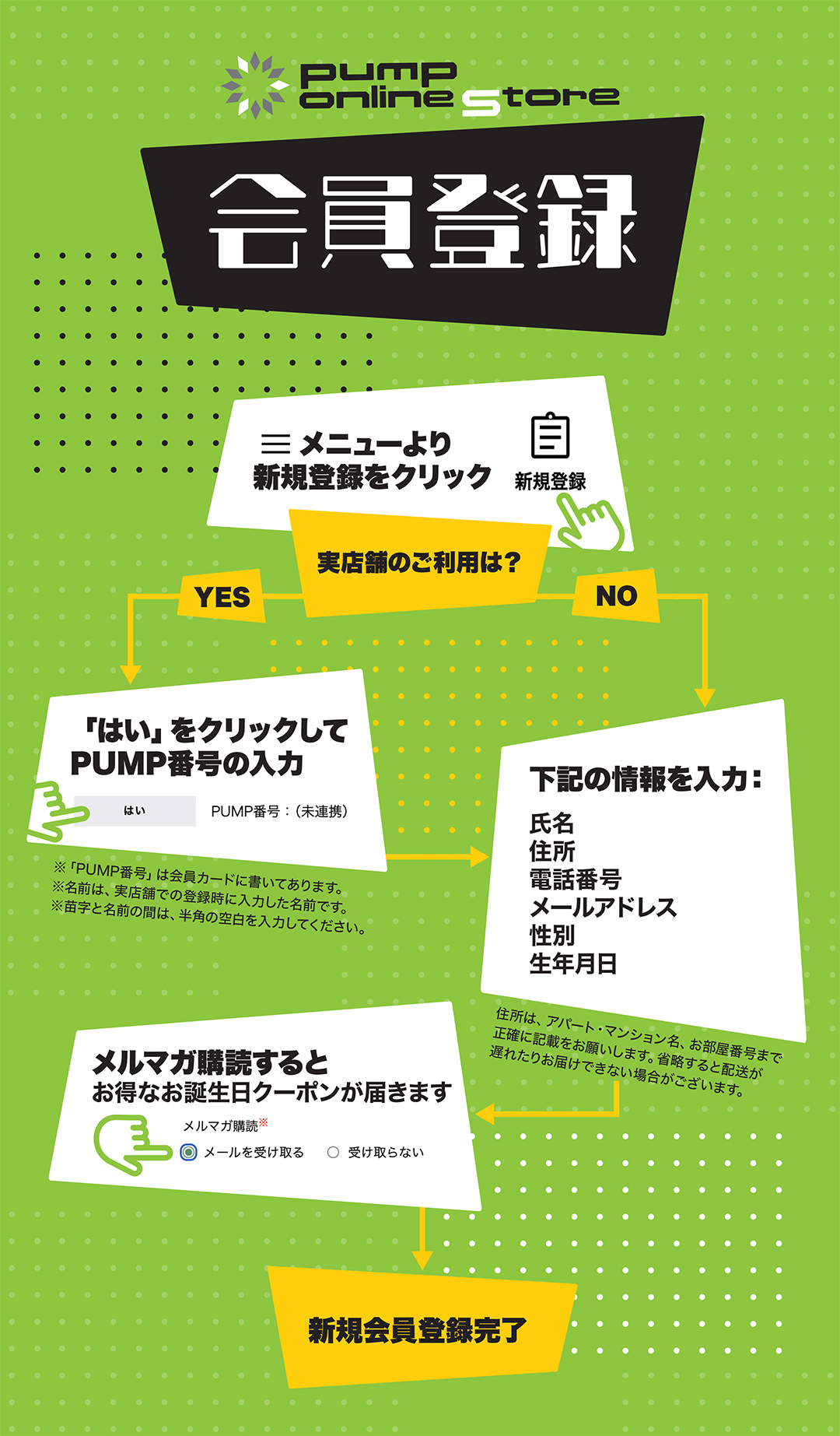 PUMP ONLINE STOREの登録方法・ログインについて