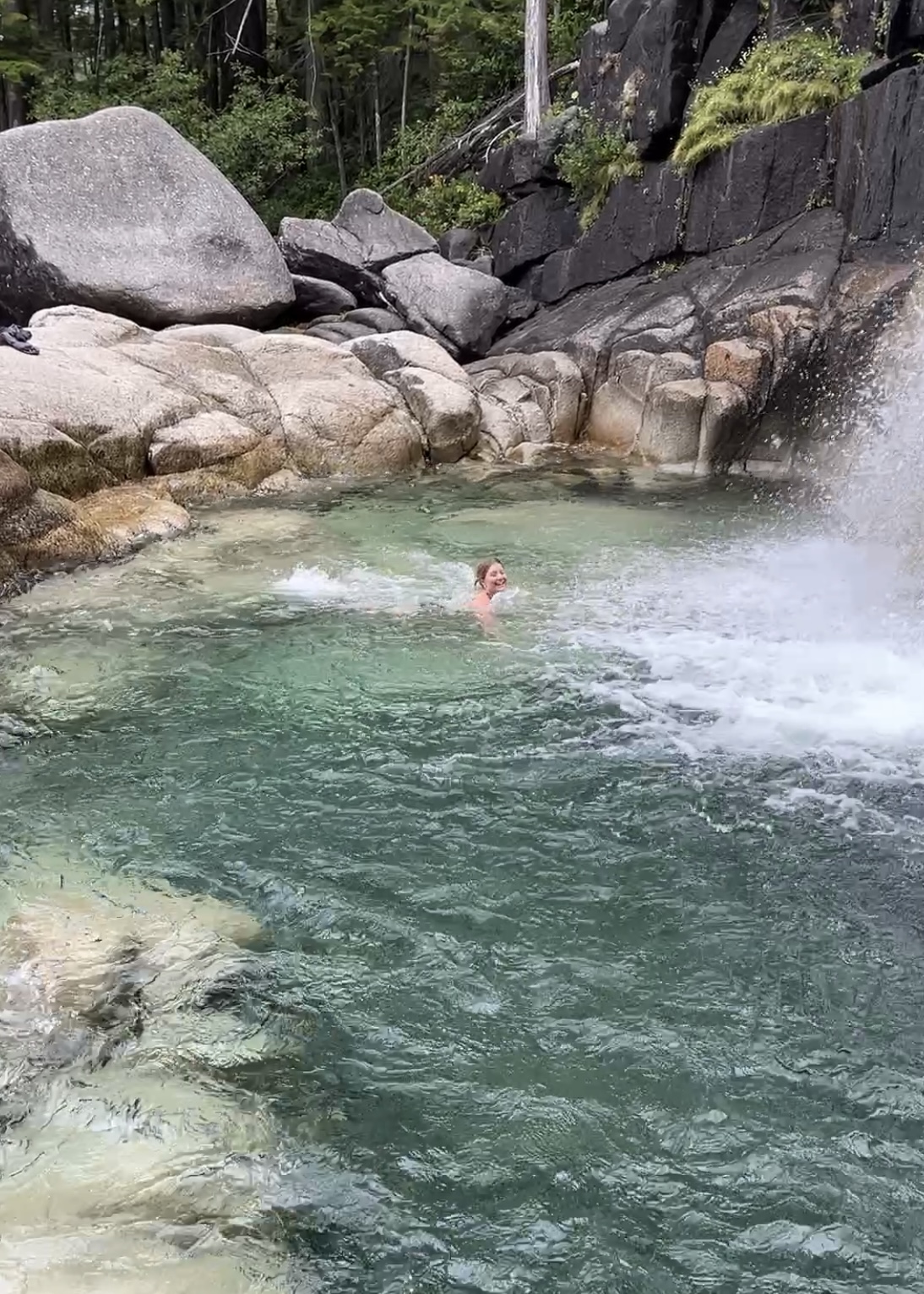 カリフォルニア出身の友人は臆することなく泳いでいましたが、私はちょっと怖い&寒かったのでこの時も足しか水に入れなかったです。笑