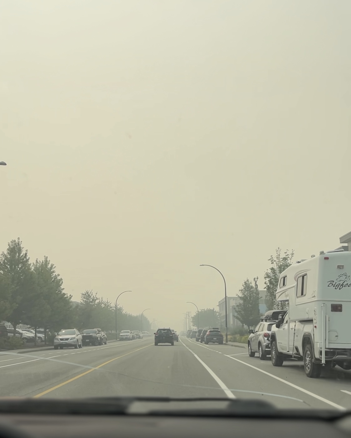 スコーミッシュでは山火事のリスクが少ないといえども、遠くの山の火事によって街全体がスモークで覆われてしまうことがあります。それはこの街が、谷間・風の通り道・海が近く湿度が高い、などの地形的条件によってスモークがとどまりやすいためです。そのため、例えば、国を跨いだアメリカのシアトルでの山火事でもスコーミッシュまでスモークが届くそうです。実際に、9月中にもペンバートンというスコーミッシュから少し離れたところで起きた山火事によって、街全体がスモーキーになってしまいました。