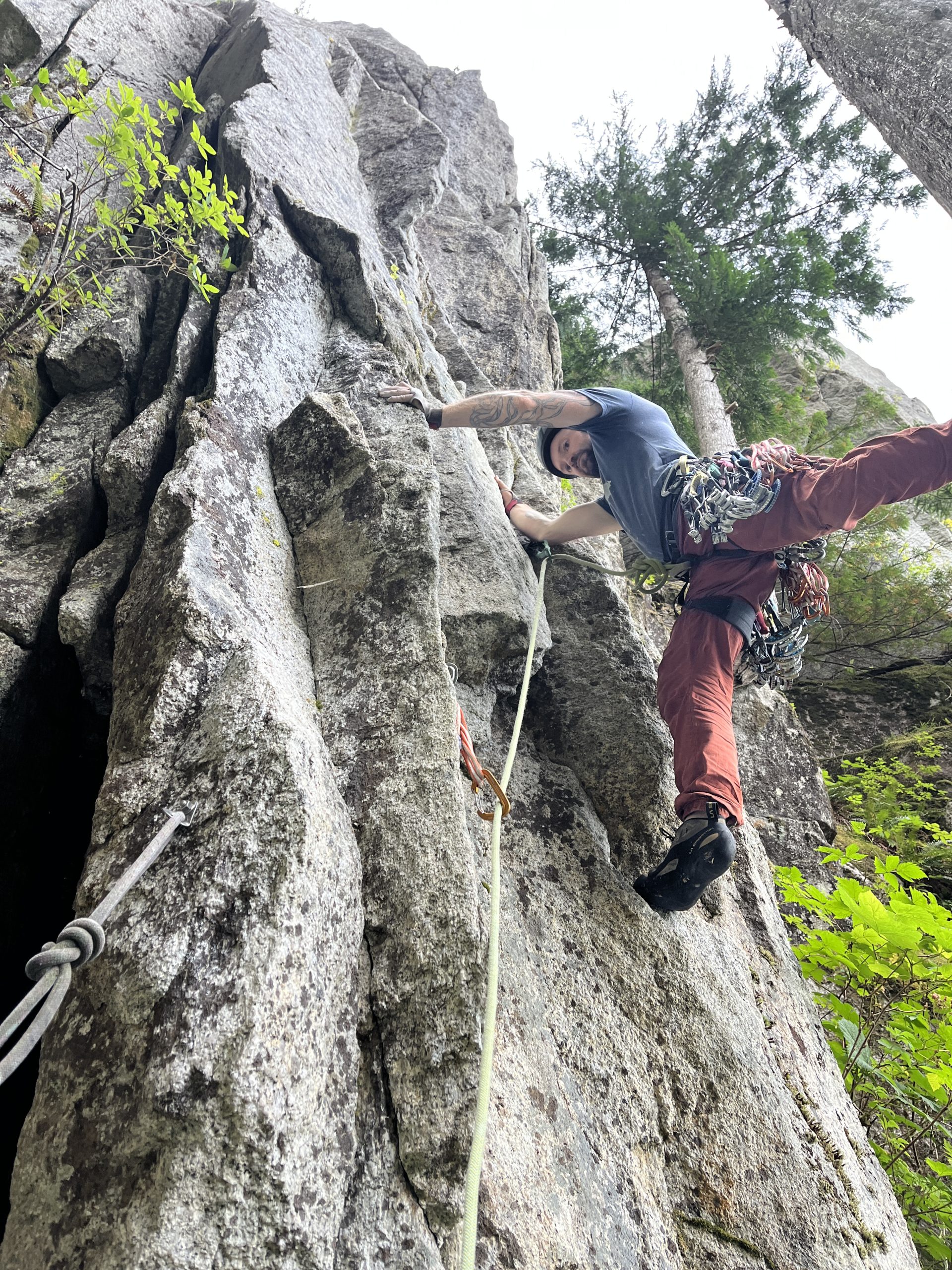 グレード的な核心はここの出だしの2ボルト。クリスがリードしましたが、テンションを何度かしながらなんとか抜けていきました。フォローした私はというと…かなり悪く感じました。。というかテンションした挙句、本当に核心が越えられずにエイドで抜けました笑。正直キーホールドに届かなかったのでリーチ無いと相当悪いんじゃ無いかなぁと、思ってしまいました。