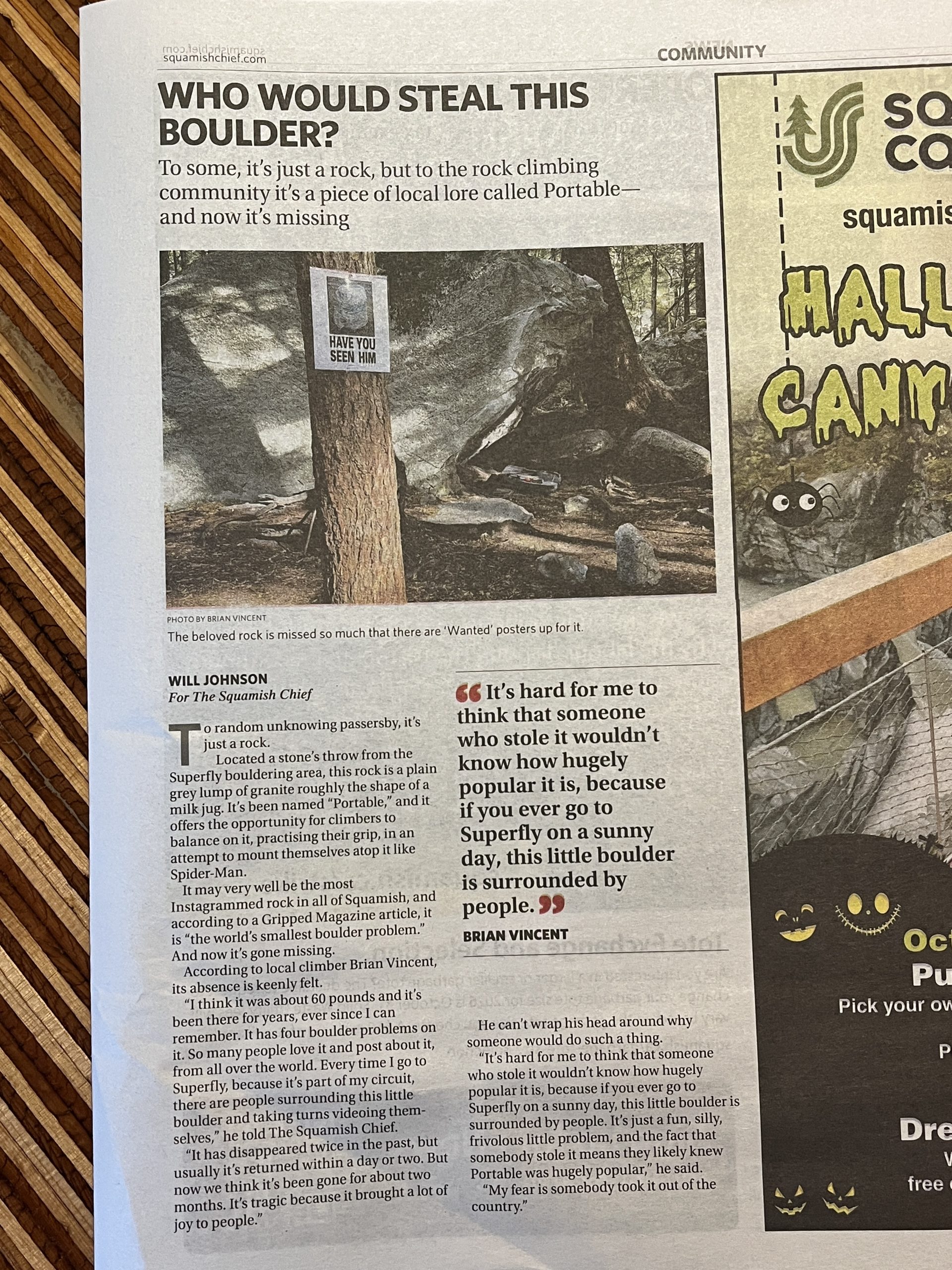 この石、スコーミッシュでボルダーをしたことのある人なら、知っているのではないでしょうか。