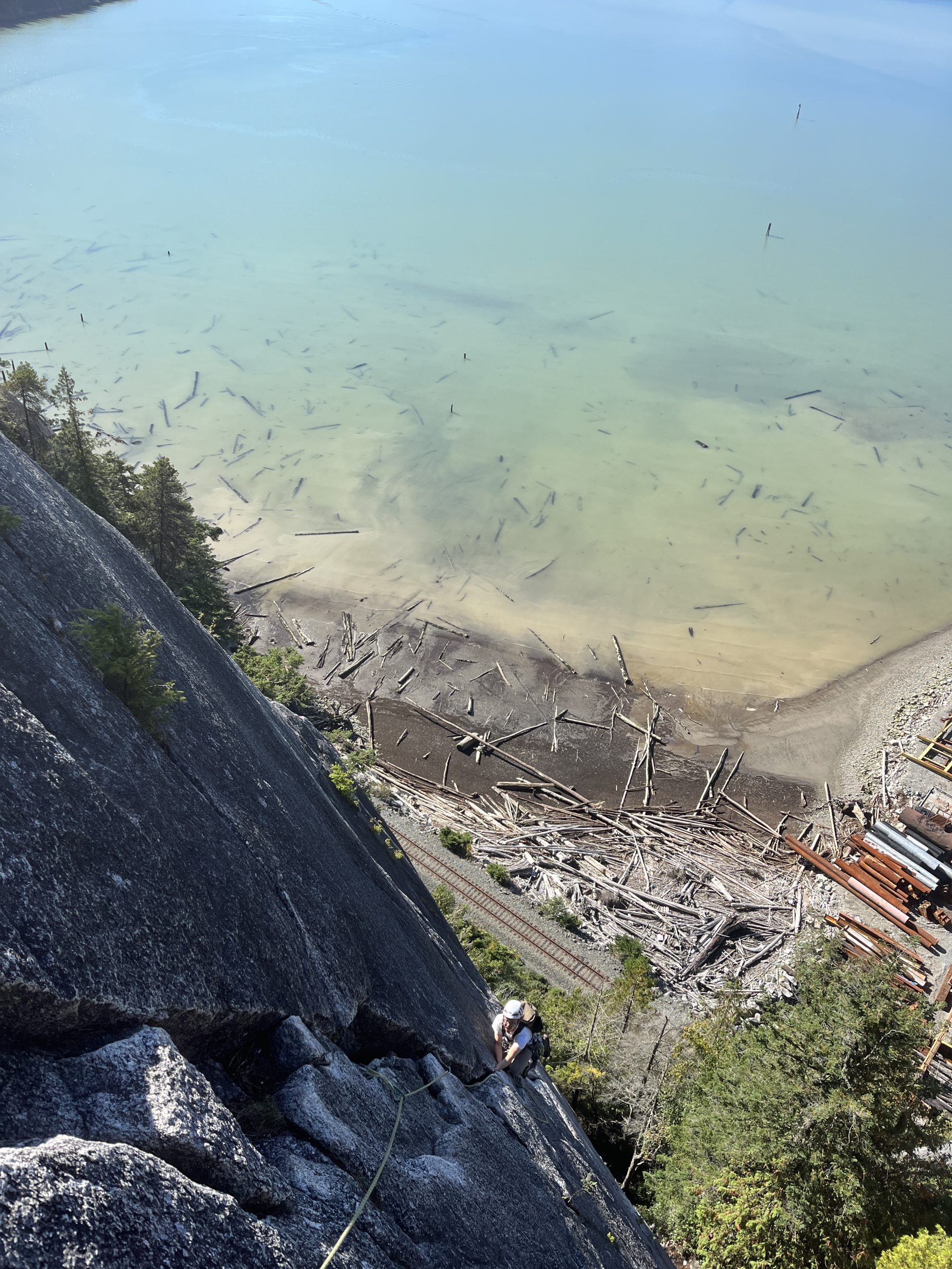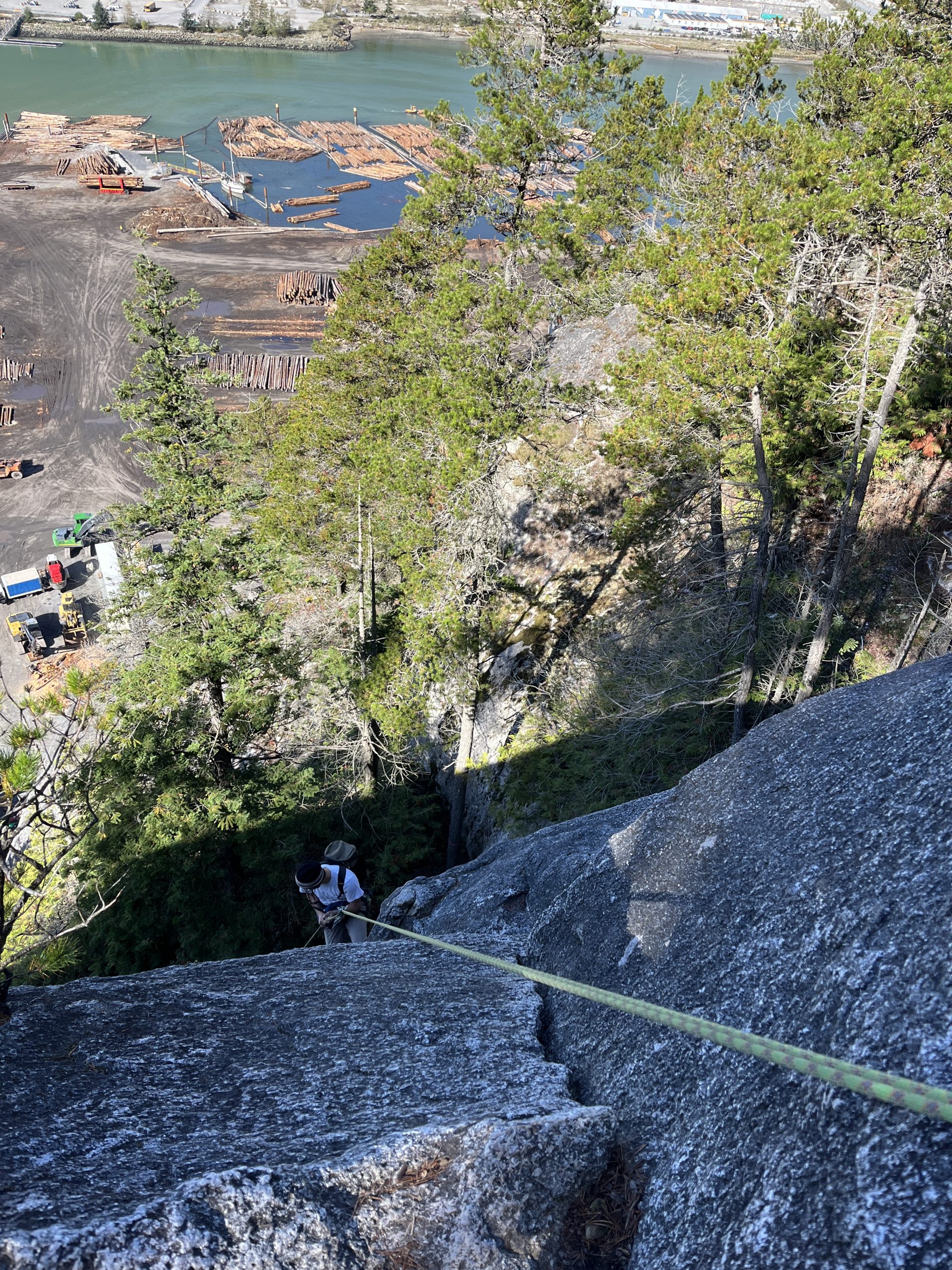 核心は下部とトポに書いてあり、実際にそこが少し悪かったです。その後もいつも以上に丁寧に時間をかけて登ってしまいましたが、トップアウトした時の景色の良さ!海を背にして登るってやっぱり気持ちがいい!フォロービレイをしながらずっと海を眺めていました(ちゃんとビレイはしながら)。