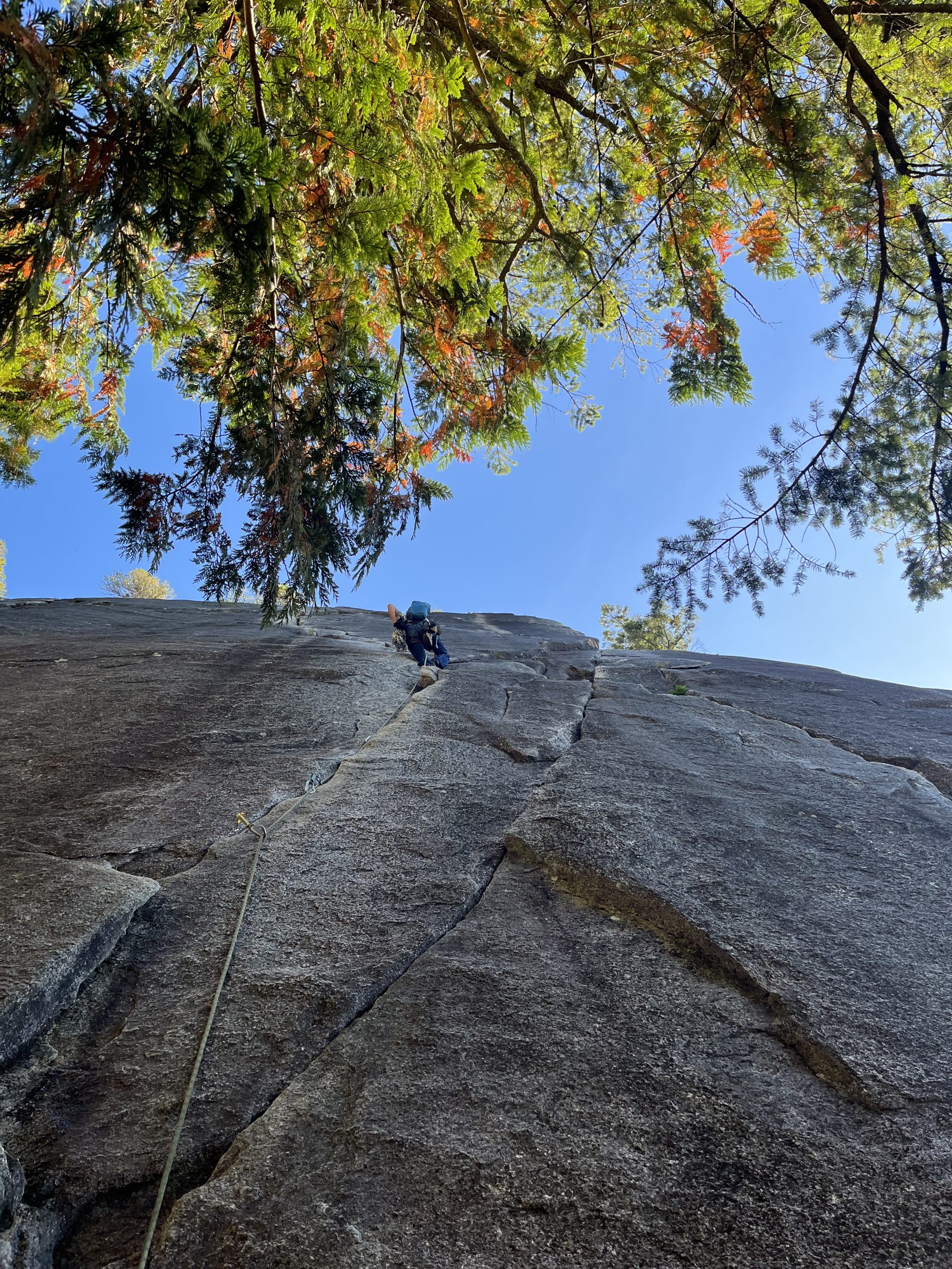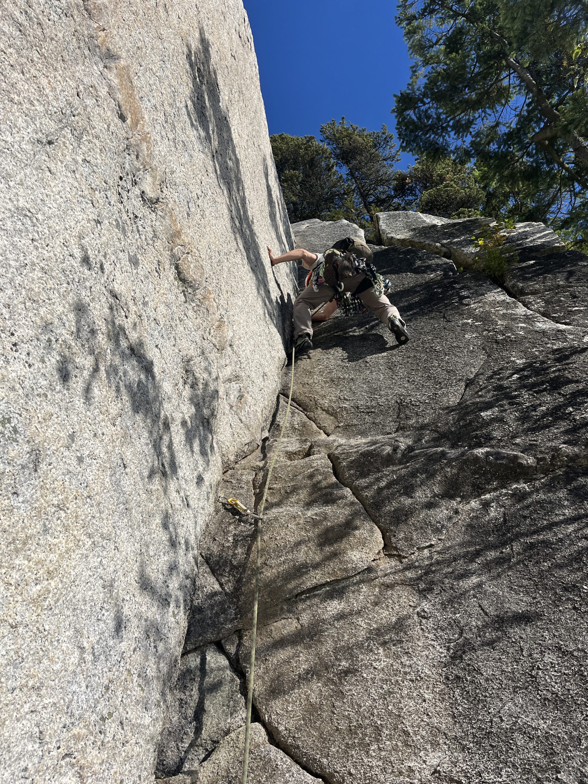 テラスから顕著なコーナークラックを登ります。レイバック気味の体制でプロテクションを取りながら登るのってすごく怖くないですか?私は苦手です。(フォローだったけど笑)このコーナーも5.9でした。