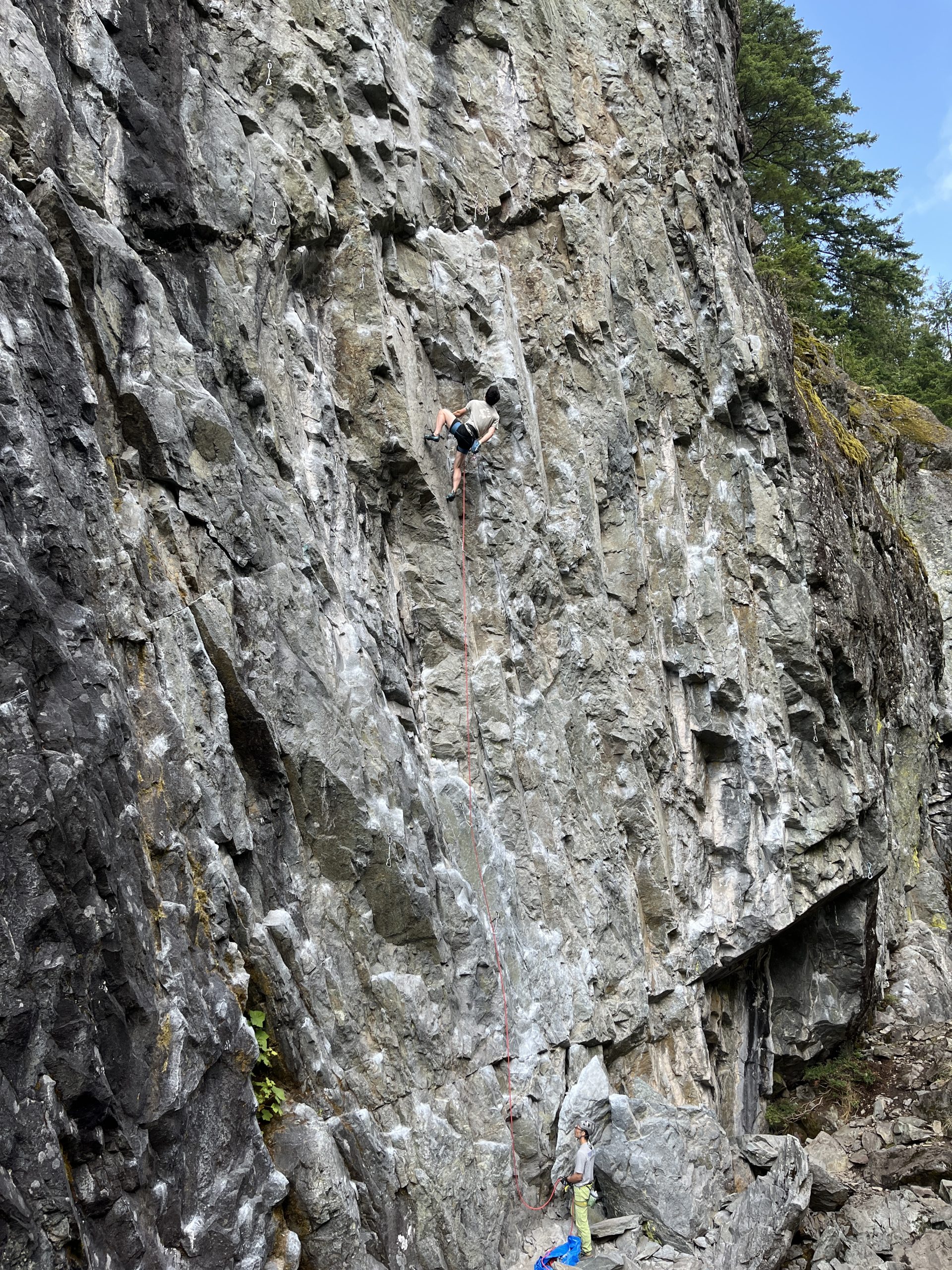 「え??雨だよ?」って?大丈夫です。スコーミッシュにも、雨の日にも登れるどっ被りスポートエリアはあります!