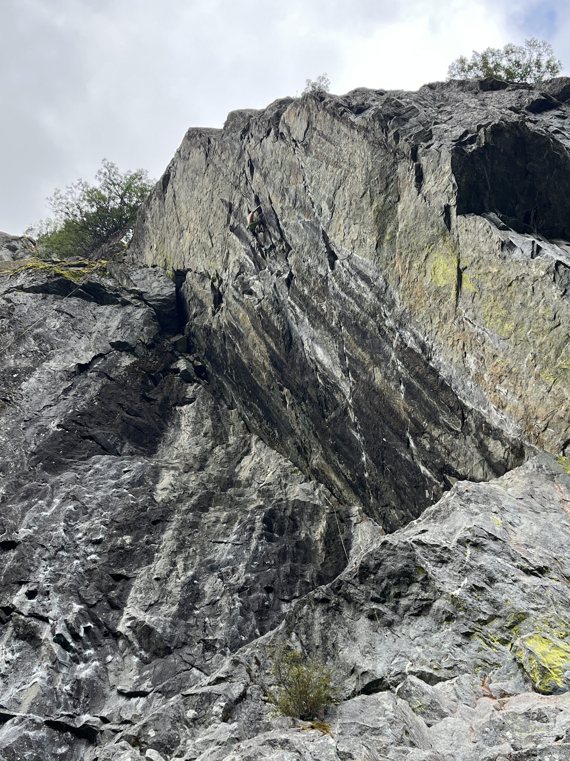 135度か140度くらいあるんじゃないかという壁に5.14までのルードが目白押し。こちらも朝まで雨の日にも、お昼過ぎにはほとんど乾いていました。