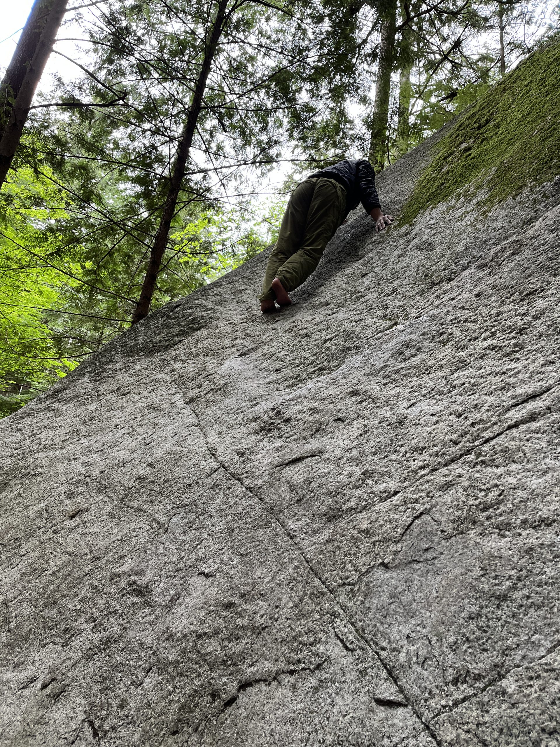 「え??雨だよ?」って?大丈夫です。スコーミッシュの森は木々が屋根になってくれるので、降り始めであればボルダーできます。