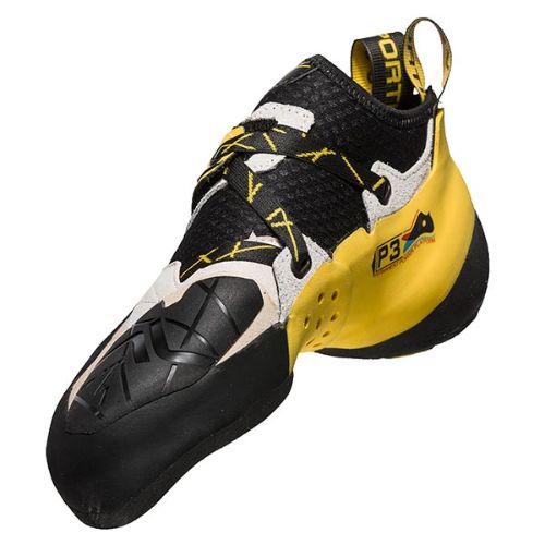 現在のクライミングシーンではスメアリング性能が問われることが増えました。新しいソリューションはグリップ力を強化。シューズ全体をソフトにすることで、エッジングとスメアリングのバランスを重視し、スポートクライミングのあらゆるシーンに対応するモデルとして進化しました。ダウントウ、ターンインを長く維持するP3構造やロックハーネスシステムなどの機能は変更ありません。