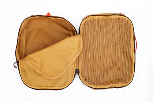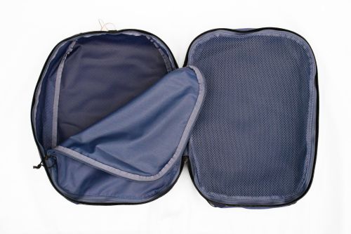 どこへ行くときも必需品を整頓して収納できるギア用ミニクローゼット。収納に便利なクラムシェル型で、ジッパー式の間仕切りは(1つはメッシュ、1つはタフタ)中身が見えやすく、洗濯物を分けて収納できるデザイン。実証済みのブラックホール製品と同じ性能を誇り、本体と裏地とウェビングは環境への影響を大きく軽減するリサイクル素材を100%使用。先駆的なリサイクル・TPU(サーモプラスチック・ポリウレタン)フィルムをラミネートしたマット仕上げ。容量14リットル。フェアトレード・サーティファイドの工場で製造。