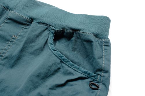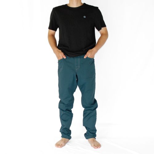 オーガニックコットン製のアウトドアおよびクライミング用パンツ。背面に独自のポケット形状。裾とウエストは調整可能。最大の快適さと可動性。スリムフィット。イタリア製。