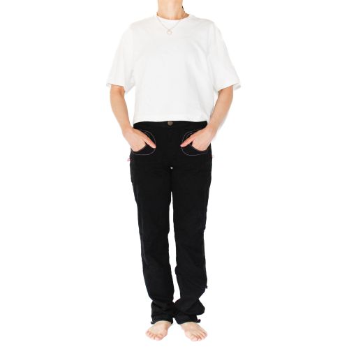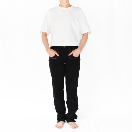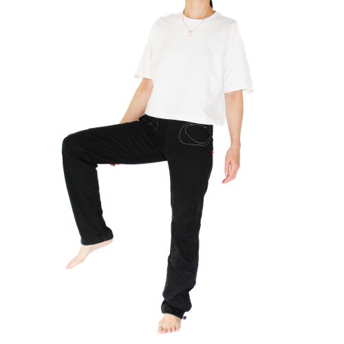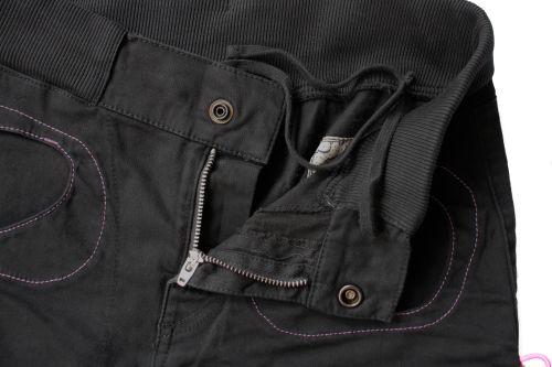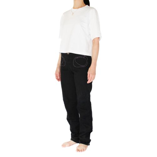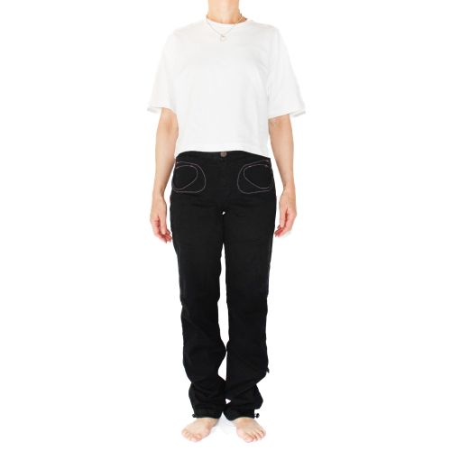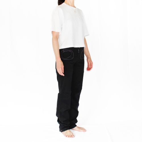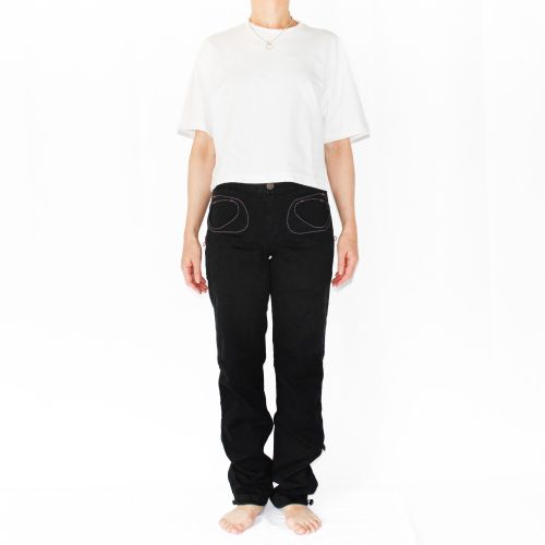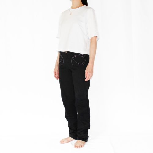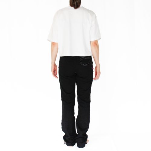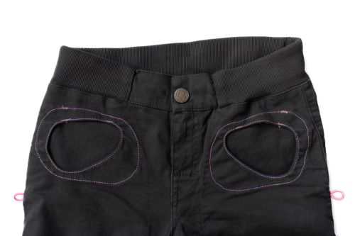 ウエストと裾はサイズ調整が可能で、背中側には刺繍が入っています。