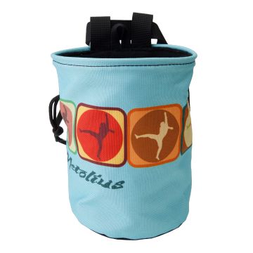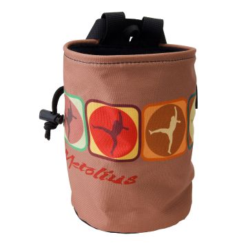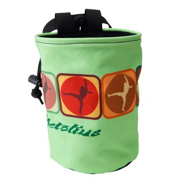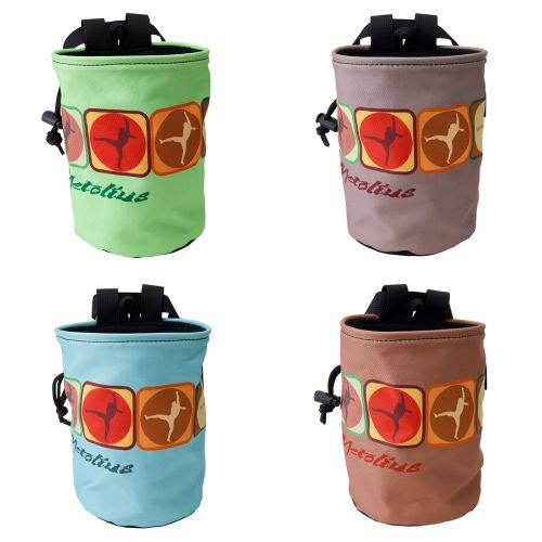 メトリウスのロゴをあしらったシリンダー型チョークバッグ。