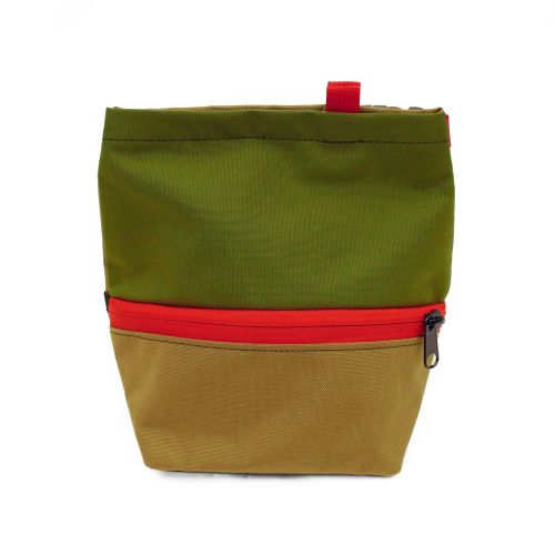 ボルダリングプロジェクトの仲間たちと共同開発したスナックサックは、長年培ってきた当社の象徴的なランチバッグ・チョークバケツのデザインと、市場で最も安全なマグネット留め具を融合させています。安定性を高めるために若干小型化され、市場で一般的な3個のマグネットの代わりに、20個のマグネットを密集させて配置することで、最高の密閉性を実現しています。安全なジッパーポケットに加え、前面にはオープンドロップポケットが付いており、クライミング中にあらゆるサイズのスマートフォンを三脚として簡単に使用できます。2インチの伸縮性のあるブラシループは、あらゆるモデルのブラシを安全に持ち運べます。巻き下げて安全に収納できるので、チョークをしっかりと保持します。