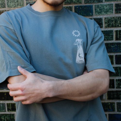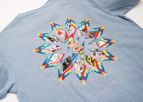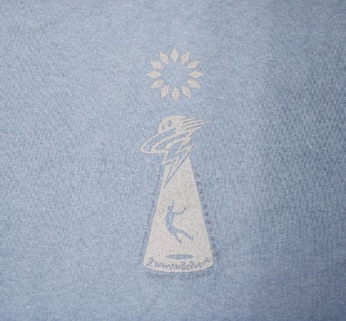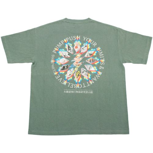 UFOワープ柄を3D調をテーマにビンテージなクライミングシーンをコラージュしたバックプリント。フロントにはコラボレーショングラフィックをリフレクタープリント。