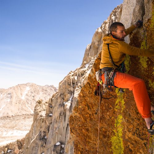 温かく通気性に優れたR1 ウルトラライト・フーディは、プロアスリートや熱狂的なクライマーがビッグウォールに欠かせないテクニカル・フリース。愛用のベースレイヤーと同じくらい軽量ながら、耐摩耗性を備えた滑らかな表面により鋭い岩との接触で裂ける心配も無用。このフリースが一部を担うフリー・ウォール・キットは、現代のロッククライミング課題のために戦略を進化させつづけるパタゴニアのアンバサダーたちの要求を満たすようデザインし、最小限のレストでも完登に十分なだけのエネルギーを回復させるような、困難な長丁場のマルチピッチのルートを想定。
