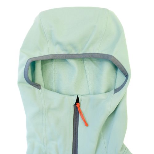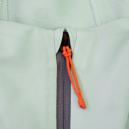 長めのフロントジッパーは熱をすばやく逃がし、肩がこわばっているときやヘルメットをかぶったままでもフーディを脱ぐのに十分な余裕を提供
