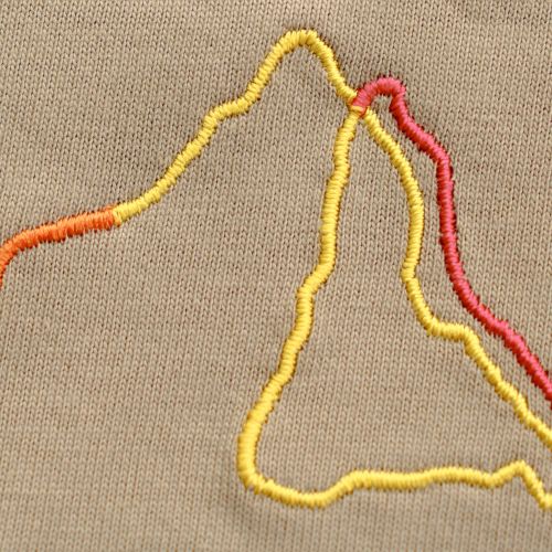 ヨセミテの山々をモチーフにした刺繍をフロントに配置した半袖Tシャツ