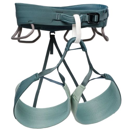 ソリューションは幅広いスタイルのクライミングに対応するハーネス。コントワーエッジ構造のレッグループとウエストベルトは、中心部に剛性を持たせながらエッジ部分をソフトに仕上げており、圧迫感を軽減して身体にフィットします。各ギアループに最大15本のクイックドローがラッキング可能な大容量ギアループを装備しており、ダブルラックを快適に運びながらマルチピッチのリンクにも対応。さらにシームレスなインフィニティビレイループと、後部に第5ギアループも備えており、オールラウンドクライマーに理想的なハーネスとなっています。