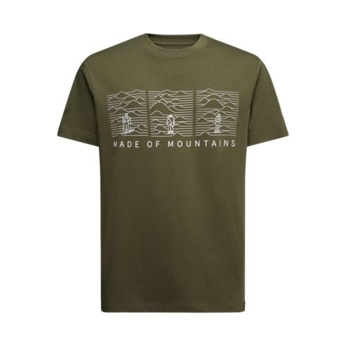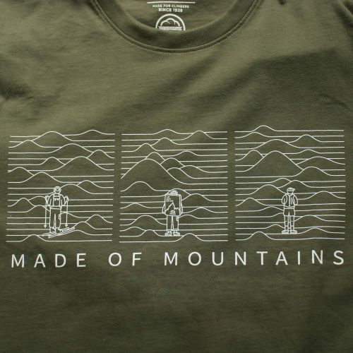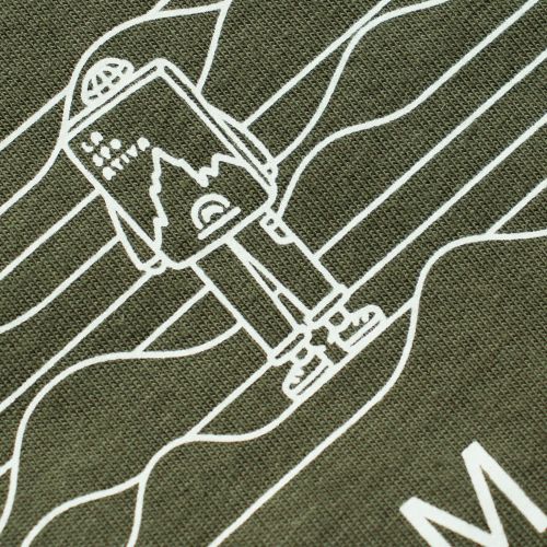 山や冒険への想いをグラフィックで表現した、アウトドアスピリットを感じる一枚。