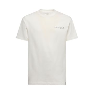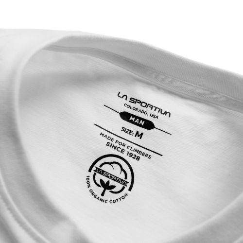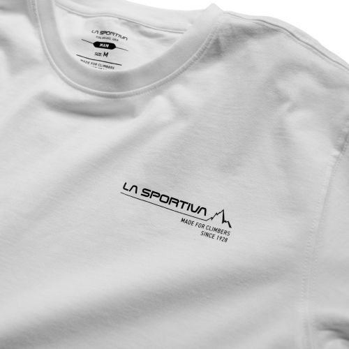 La Sportivaのクライミングの歴史を胸元のグラフィックで表現したオーガニックコットンTシャツ