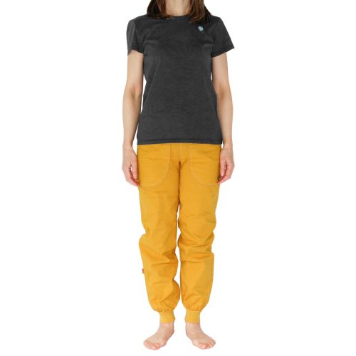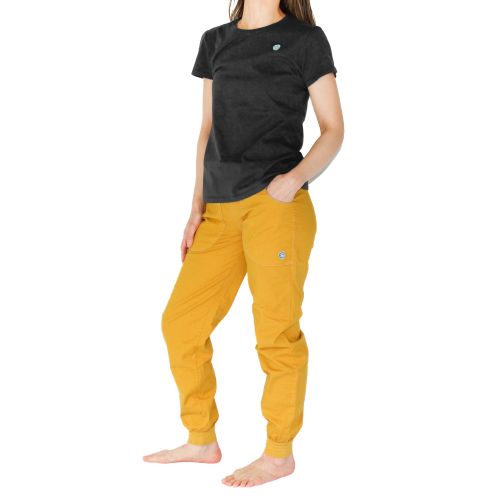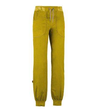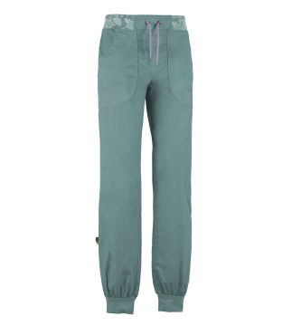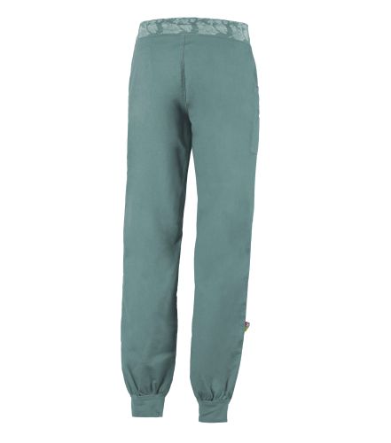 このパンツはリネンとオーガニックコットンの混紡素材を使用しており、アウトドアやクライミングに最適です。フロントポケットにはロゴ刺繍、ウエストバンドは調節可能なプリント柄です。