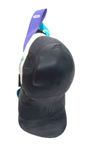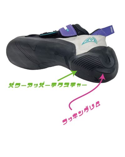 レモラプロでは新たに開発されたヒールボックスを搭載しました。圧縮立体成型技術によって一体に成型されたラバーボックスは、一般的なラバーシートの重ね貼りによる違和感や剥がれのリスクが皆無です!エルゴノミクス(人間工学)を導入したデザインは、より実際の人体の踵の形を基にデザインしており、フィット感を向上させました。さらに、シューズの中で踵がズレたり脱げてしまうのを防止する「ヒールロック™」と称するパッチを、アキレス腱の左右の窪んだスポットに貼り付けており、テンションラバーの抑え込みにとどまらない高次元のフィットを実現しました。そして、トゥーボックス同様にラバー表面には「パワーアッパーテクスチャー」を導入し、フリクション性能を押し上げています。 アスリートによるテストと修正を繰り返して開発されたこのヒールボックスは、途切れのないスメアリングを可能にするエルゴノミックなスムージング仕上げに加え、マッドロックらしいフッキングリム™(=エッジングに使用できる凸デザイン)を備えています。このギミックにより、ヒール動作においてもスメアリングからフッキングまで多彩なアクションを選択できます。