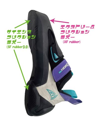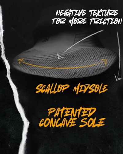 ・ヒール&ランドラバー:Science Friction R2 ・ミッドソール(シャンク):1.8mm "Scallop" Compressed Polyester(立体コンケーブ構造)