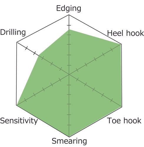 ソール側は適度な硬度と耐久性を持つサイエンスフリクションラバー™3.0を採用。ラバー表面にデザインされた「パワーアッパーテクスチャー」によるフリクション性能の強化とともに、ノーシャンク構造のため柔軟に屈曲し、スメアリングのしやすさとスタンス表面の感覚の応答性を高い次元で提供します。また、小型の1.8mm芯材が親指の縁にのみ内蔵されており、ジブや極小エッジのスタンスへの乗り込みも可能となっています。