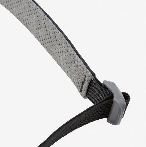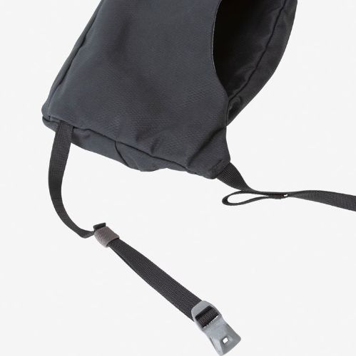 単体使用時には背面スリット内部にあるクリップ式ストラップをショルダーパッド部のテープに装着し、バックパックとの併用時にはバックパックのショルダーテープ部に装着することで、体へのフィット感を高めます。